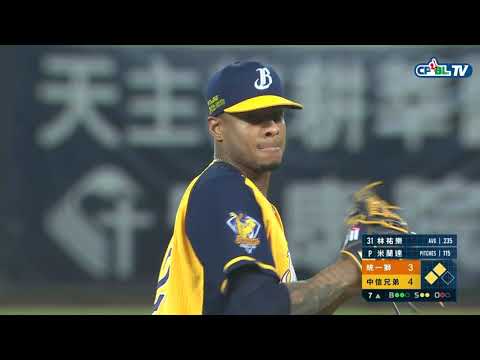 七局上半一出局,早已熱投百球的米蘭達請纓續投,不料他卻接連讓林靖凱和郭阜林上壘