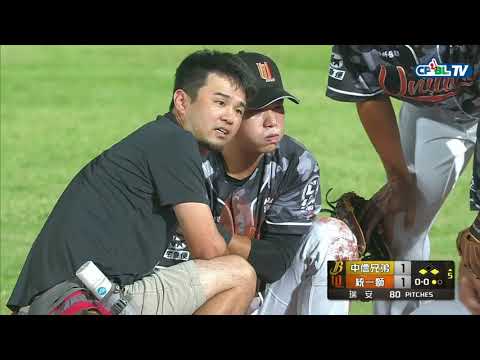09/22 兄弟 vs 統一 五局上,屋漏偏逢連夜雨,吳桀睿撲接二壘滾地球,造成肩膀傷勢