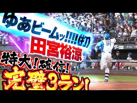 今日田宮裕涼(23歲)擔任捕手先發打第5棒,4打數3安打,其中1支3分砲+2支二壘安打,