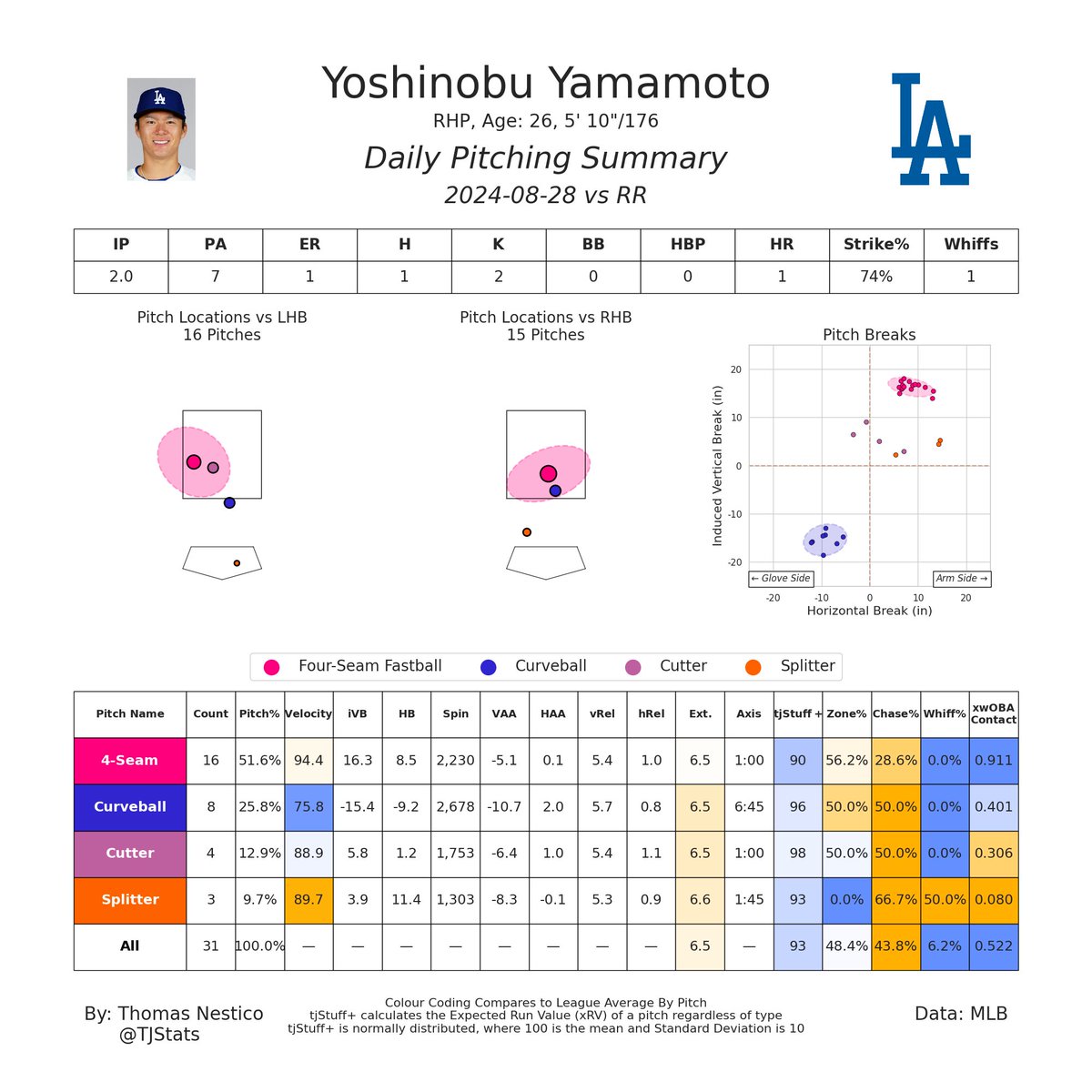 今日山本:2IP 1ER(HR) 1H 0BB 2K