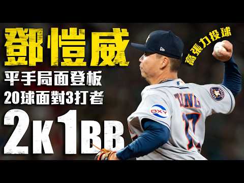 IP:0.2 H:0 R:0 ER:0 BB:1 SO:2 ERA:2.16 WHIP:0.84 MAX:96.4 mph NP:20-12 休息2天後 鄧今天在6局下半,7:7平手局面上場中繼 客 …
