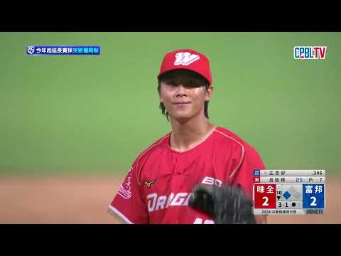 味全對富邦,十局下,比數2:2,一三壘有人。呂詠臻看完暗號後準備進入投球準備動作