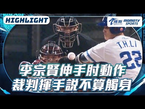 : 李宗賢7局上第3顆壞球,當時疑是伸手碰到球,裁判認定不計觸身球,隨後判定為一顆壞