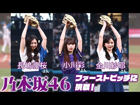 プロ野球・日本ハム─ロッテのファーストピッチに登場した乃木坂46の(右から)金