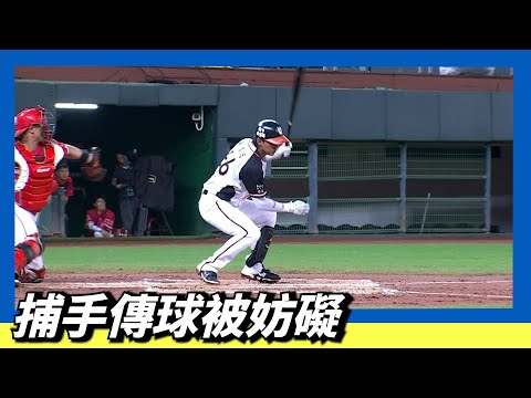 : 原來是主審妨礙 想說這樣判打者妨礙也太怪
