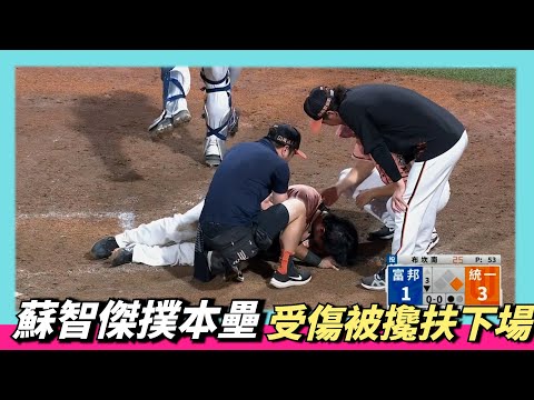 : 撲壘後左手被捕手腳卡住導致頭撞到地上