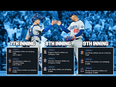 今天道奇VS水手,道奇的後援投手,七局起的九個出局數都用三振拿下