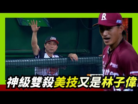 余德龍雖然傳歪 但林子偉馬上發現許基宏有往二壘的企圖 最後電視輔助判決之後改判出局
