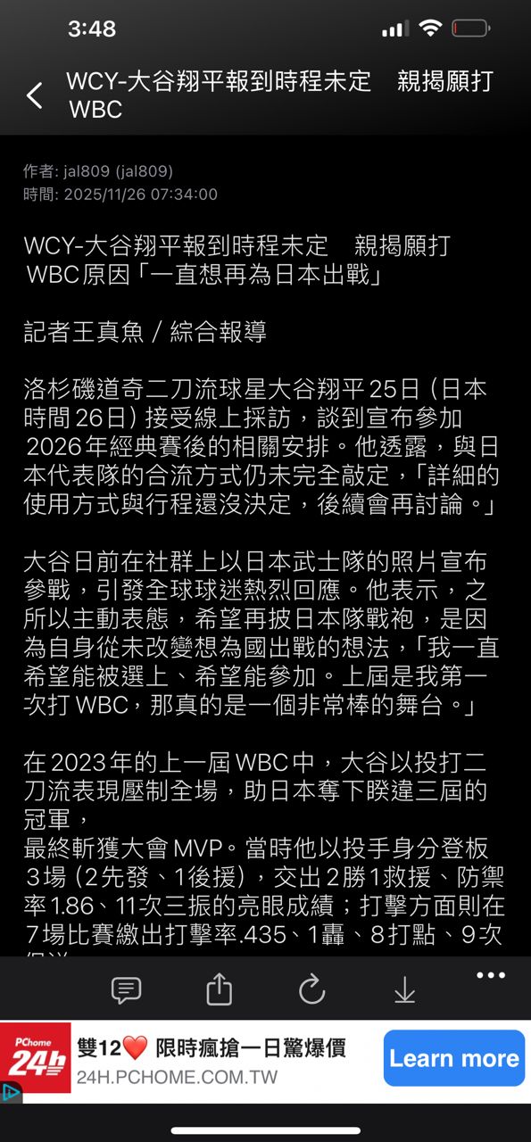 ※ 文章網址: https://www.ptt.cc/bbs/Baseball/M.1765435482.A.FCD.html