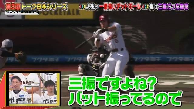 村林:那樣算是被三振了,但主審判定是觸身球。應該算是主審的同情吧。影片中能看到