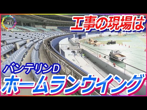 同ドームで進められているホームランウイングなどの改修工事について、報道陣に途中
