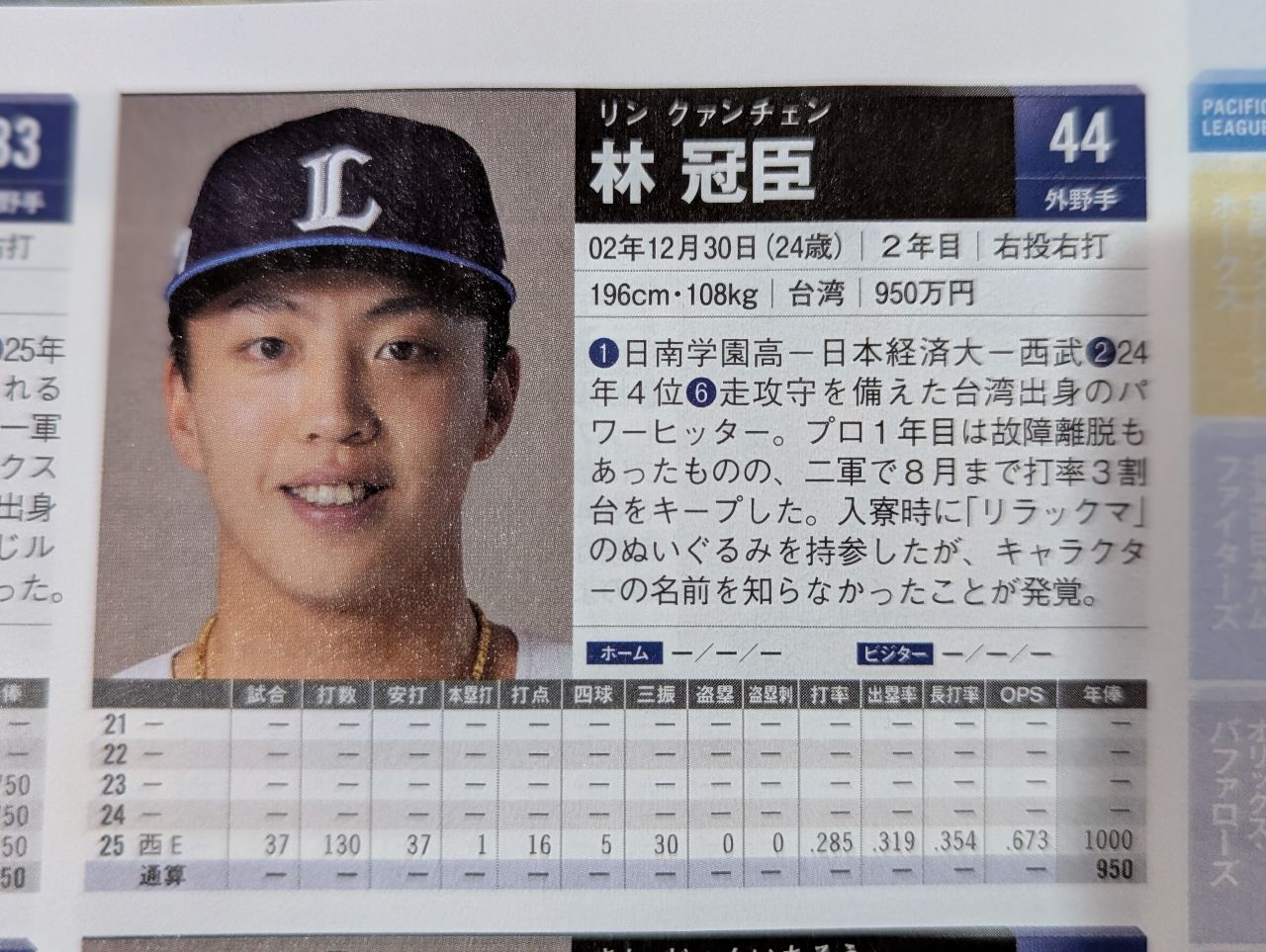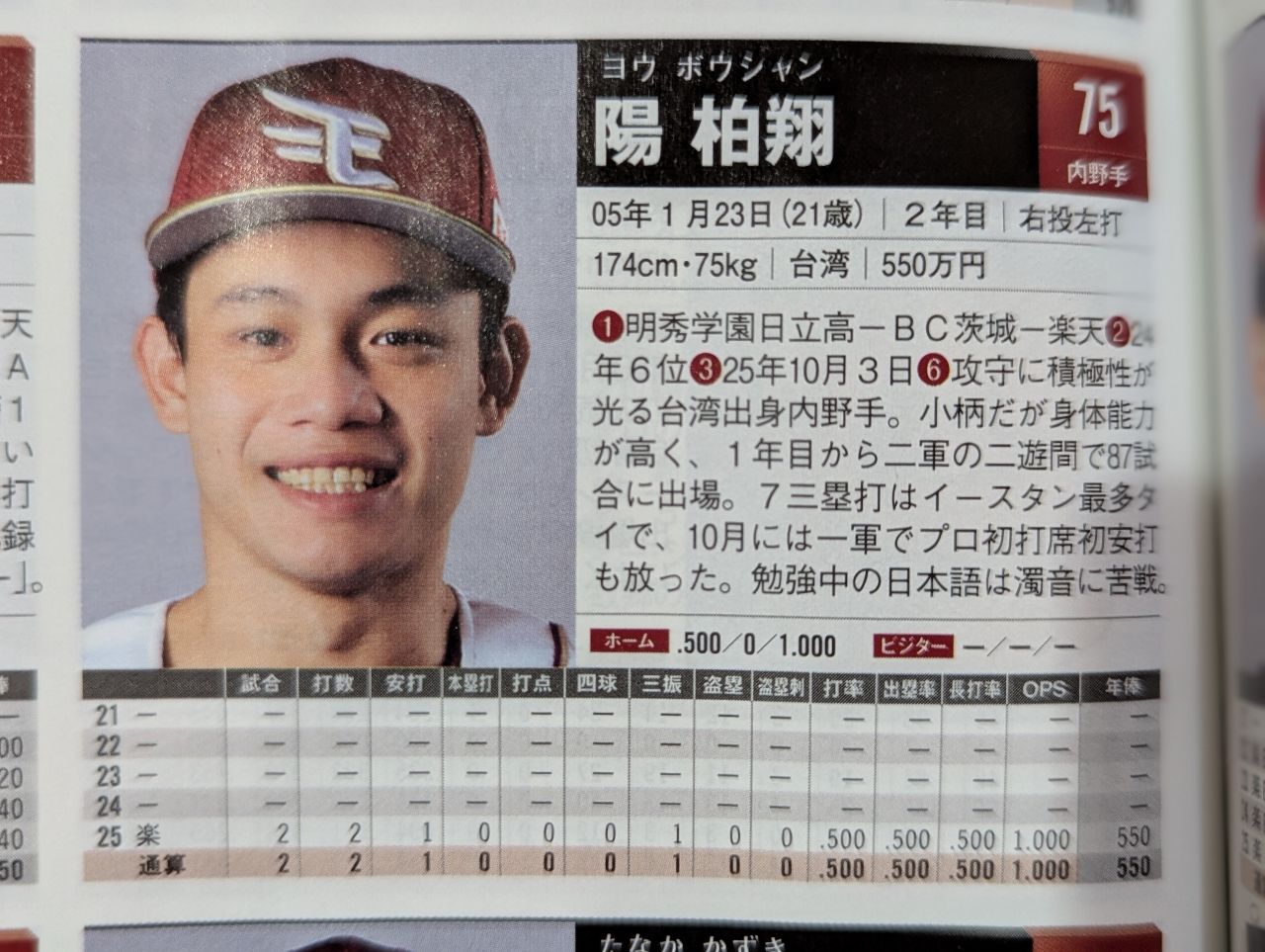 每年都固定會收Slugger的選手名鑑 B5尺寸好翻閱,資料也齊 宋家豪 變速球的揮空率41.1%,被打擊率.117聯盟第2名 王彥程 最近學會的日語是「那還用說嗎」 孫易磊 高橋翔聖/徐翔聖 在學 …