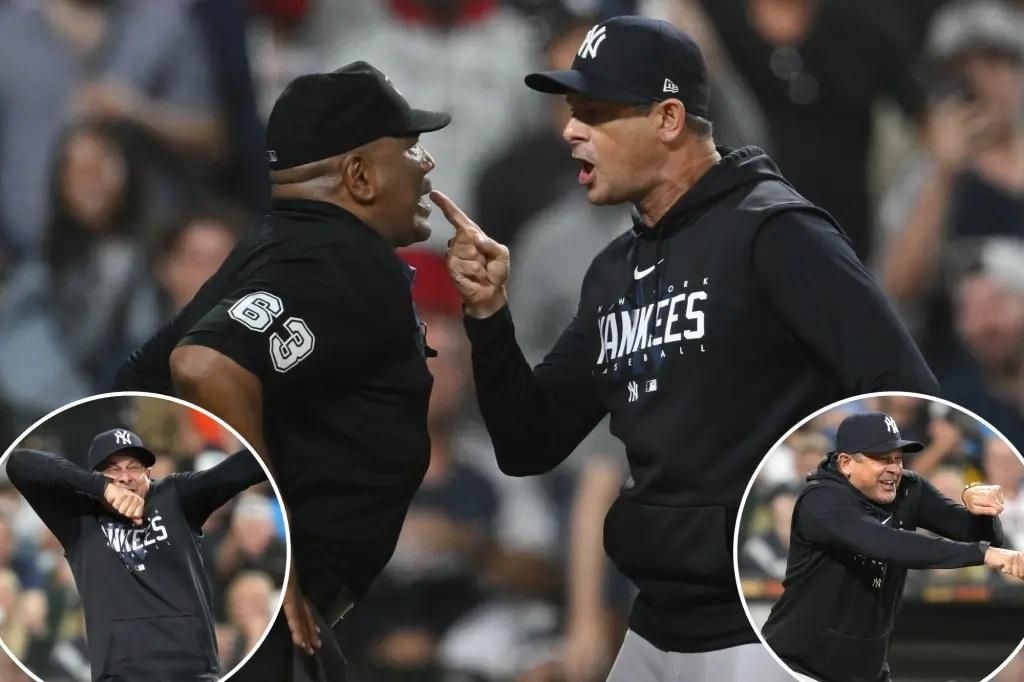 讓Aaron Boone氣到學他的拉弓姿勢抗議的男人