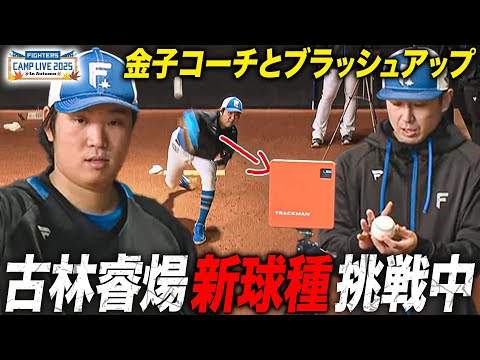 [分享] 古林睿煬 與金子千尋教練一起在牛棚嘗試新的「墜落」投球 11/3 Fighters Fall Camp - Baseball 板