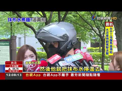 不確定是哪一家的記者,看外送員前面的麥克風,推測可能是年代、壹新聞或TVBS