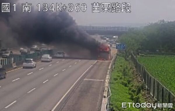 國道1號南向134.5公里苗栗至銅鑼路段今(5)日下午1時5分許發生國光客運火燒車事故,