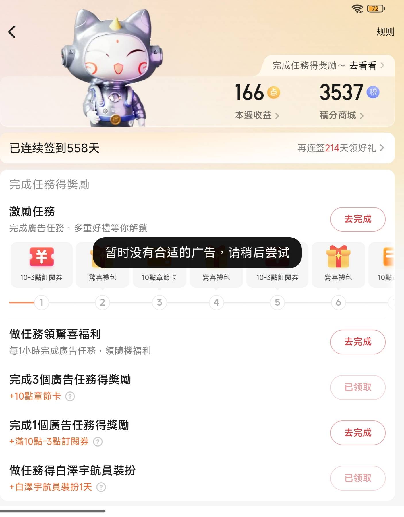 : 起點先把免費的章節卡廣告修好 搞那些 已經快5天整