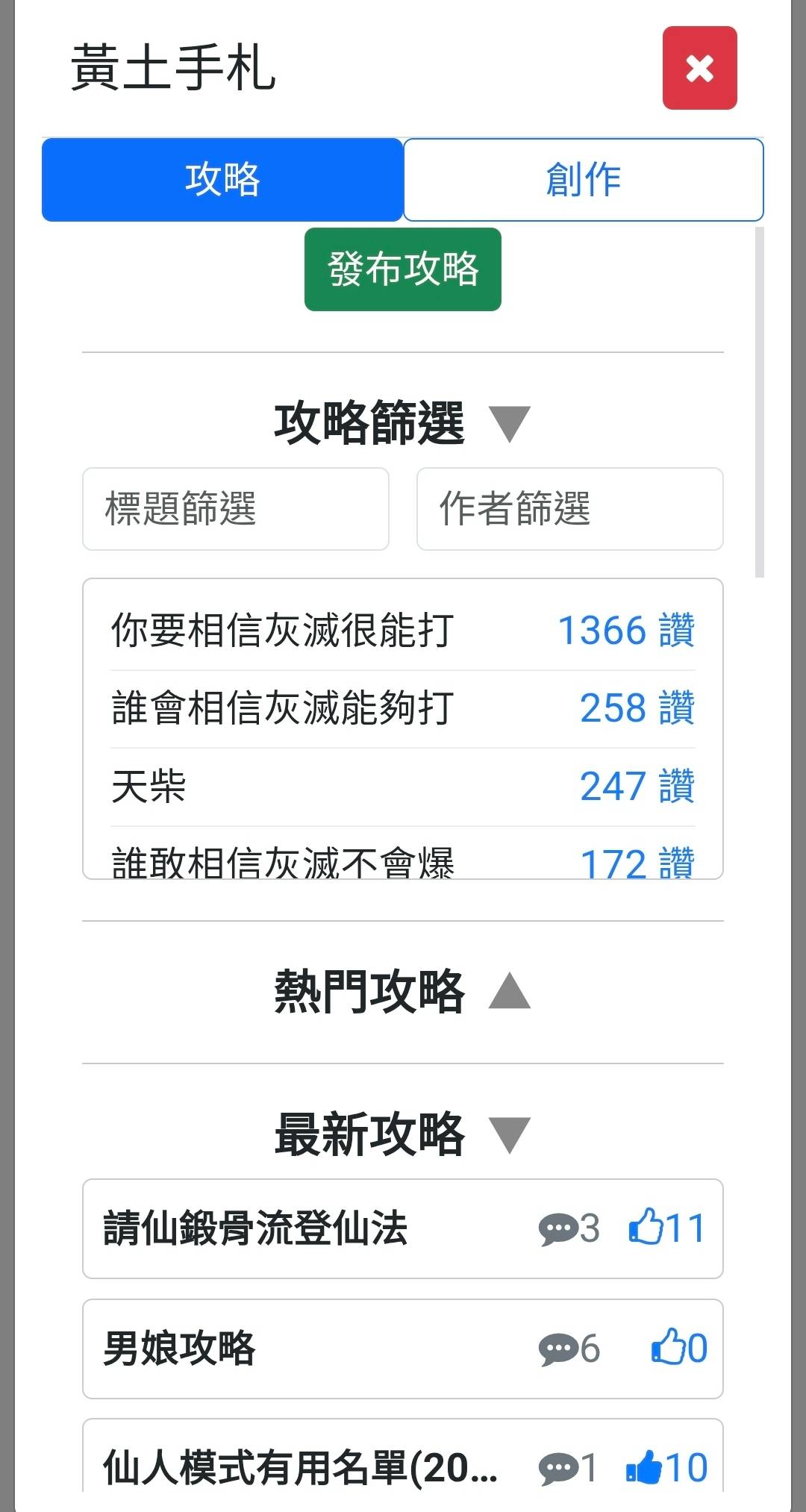 遊戲中也有提供攻略創作區讓玩家撰寫攻略或進行創作!