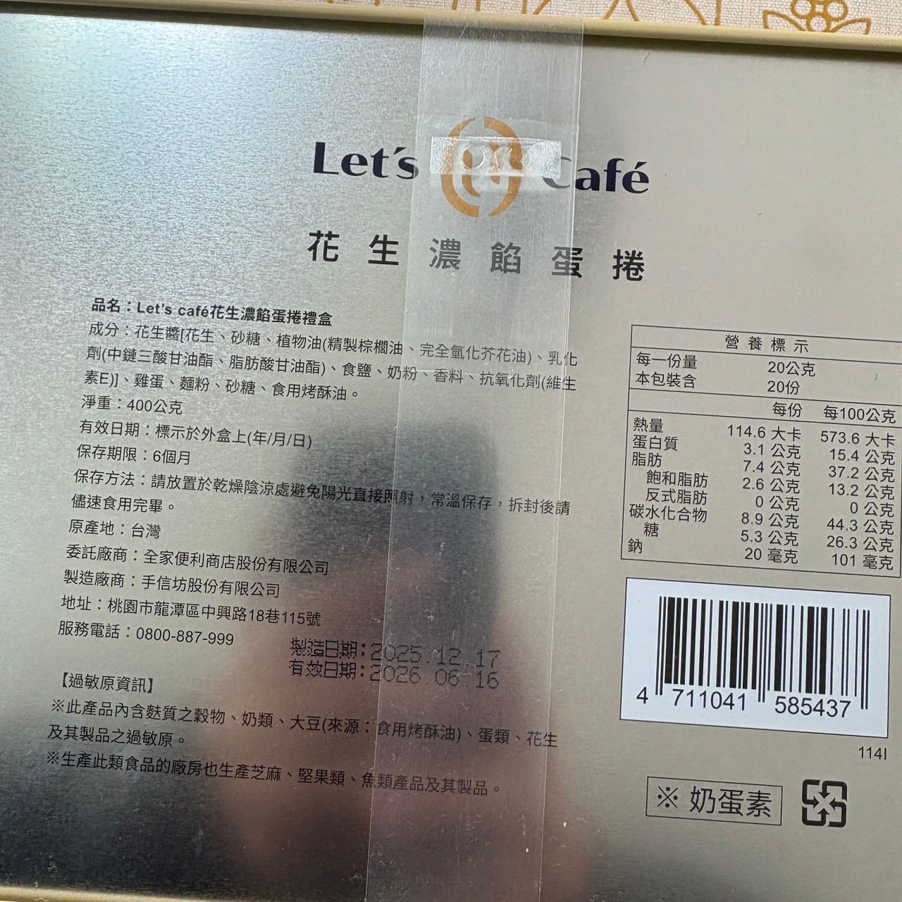 [商品] 全家花生濃餡蛋捲