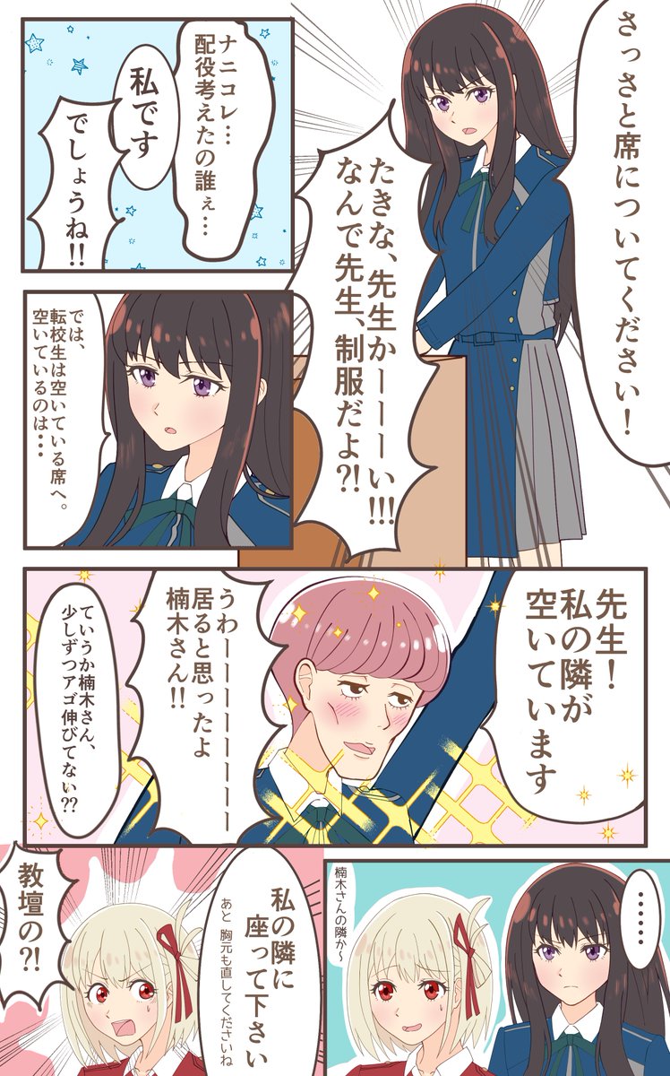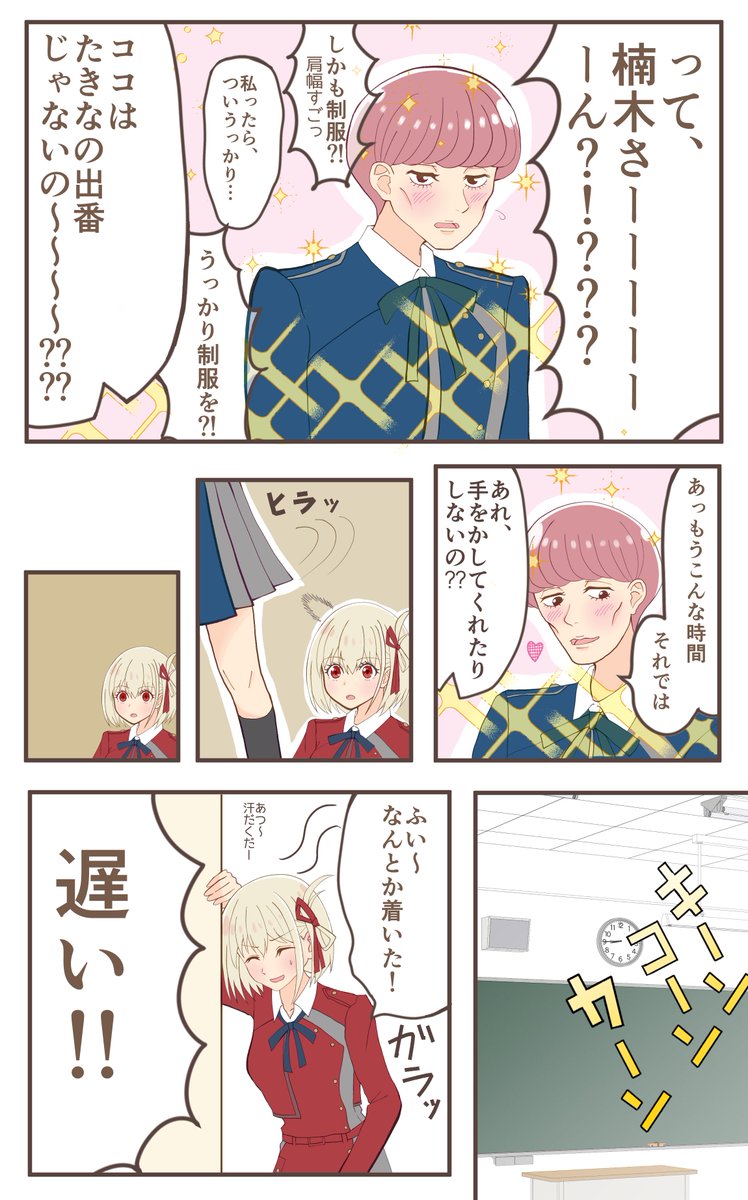 瀧:千束妳坐我旁邊,等下把領口整理下吧