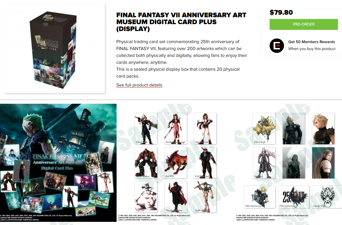Square Enix 發售《FF7》25週年紀念實體卡包,可兌換 NFT 數位卡片