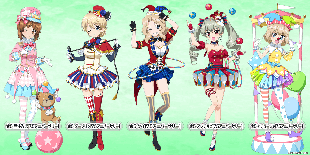 7.5周年記念衣装★5 西住みほ、ダージリン、ケイ、アンチョビ、カチューシャ の5人