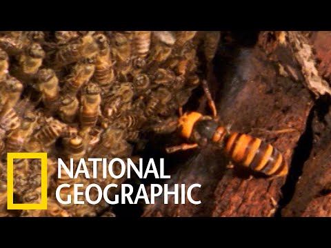 「熱殺蜂球」是東亞地區蜜蜂特有的防禦機制,當牠們發現只有單隻黃蜂入侵時,就會一