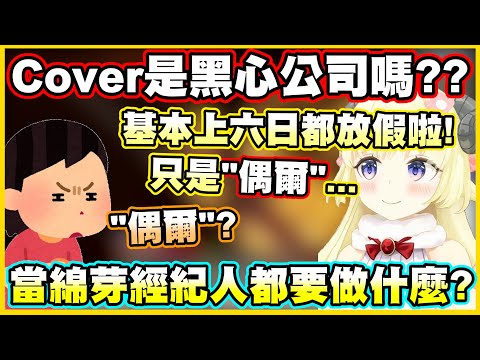 綿芽說她和經紀人聊天時,經紀人有說Cover還不錯,雖然忙歸忙但該放的假都會放。像