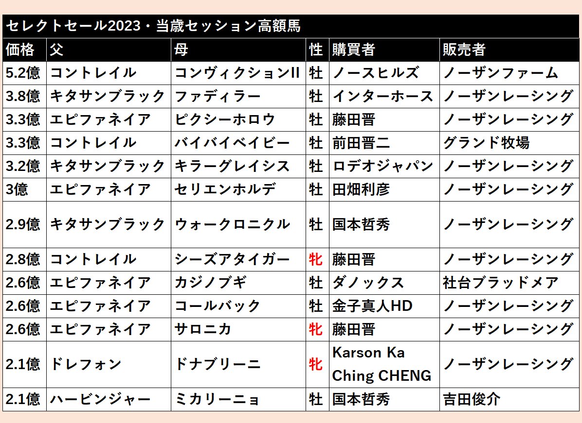 (感覺社長對神威啟示的血脈很有自信,3頭神威啟示的產駒分別花了3.3億,2.6億.1.3億