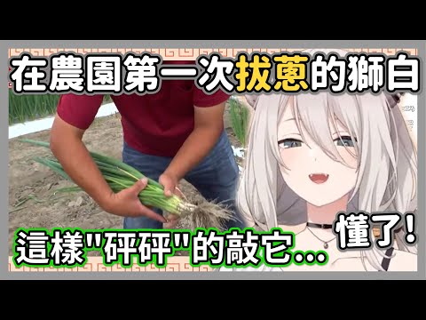 在農園第一次拔蔥的獅白白,因為不熟悉操作可愛地賞了蔥好幾記手刀