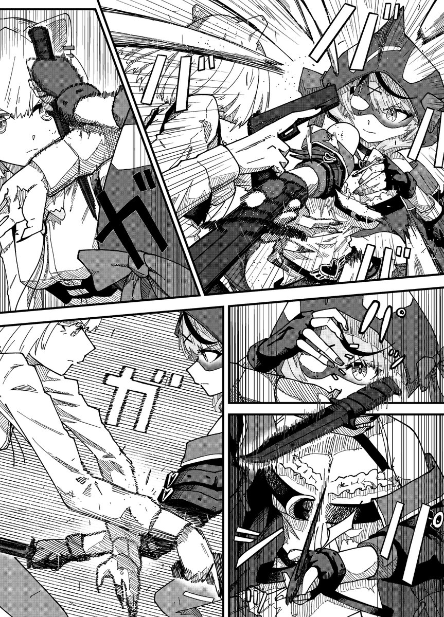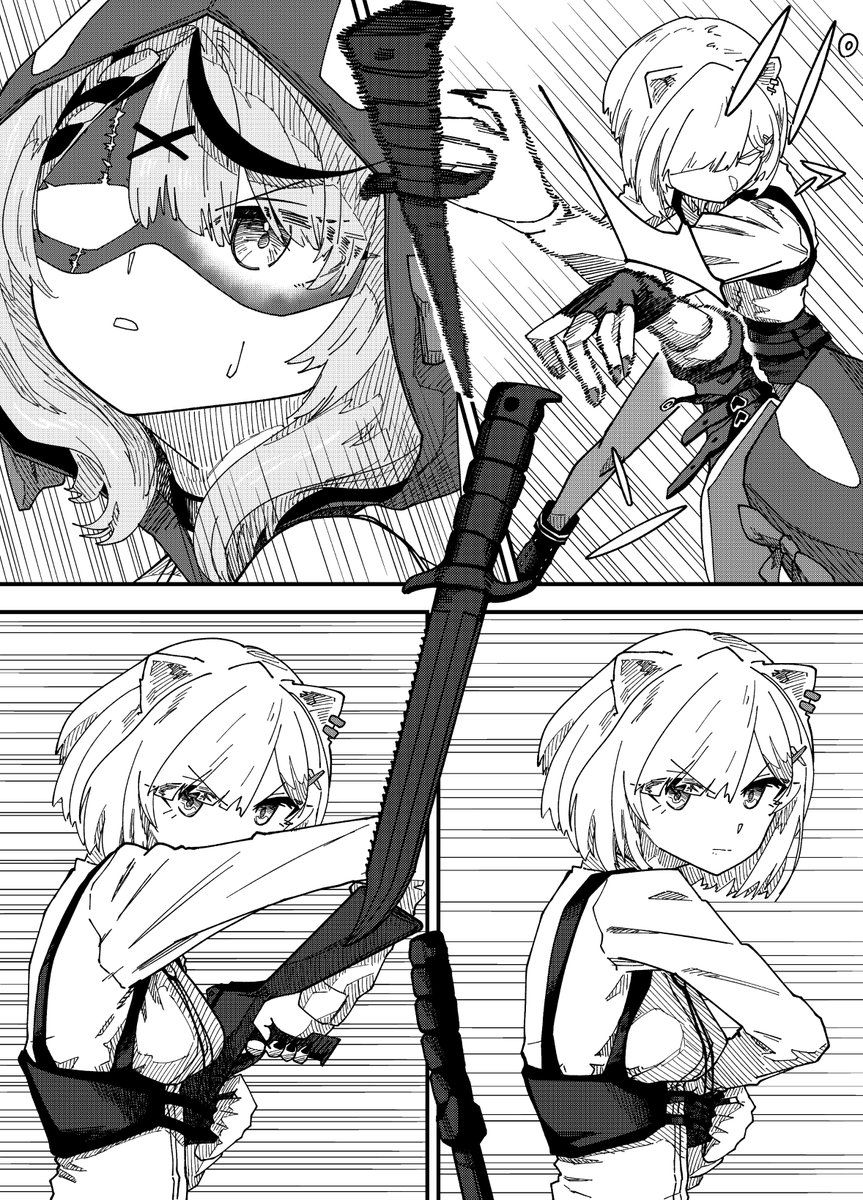 獅白驚覺腳步聲不正常地消失的同時,虎鯨的刀從她身後冒出來