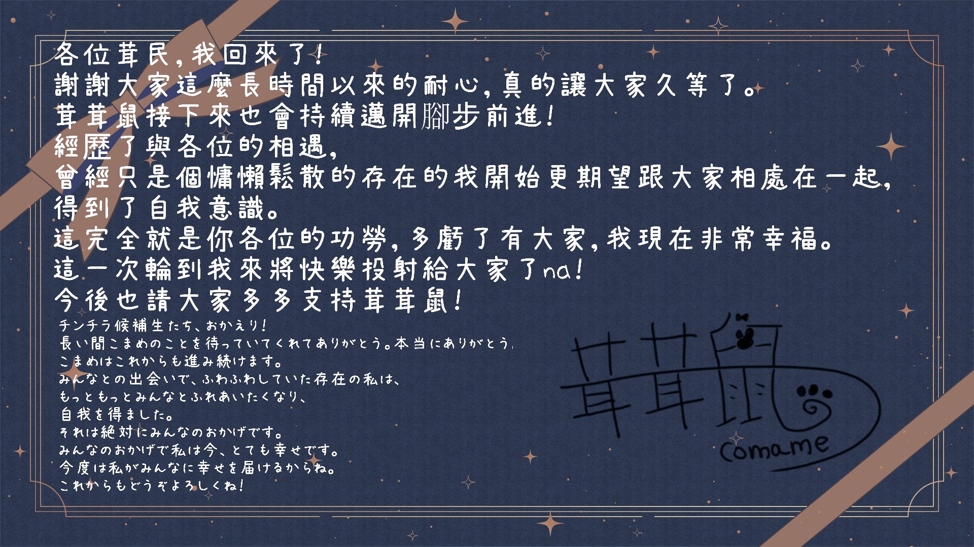 下面是直播結束後茸茸鼠發的推文,內容其實在直播的ending也有出現