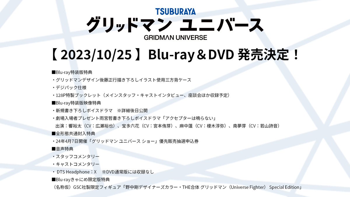 [情報] GRIDMAN UNIVERSE BD 10/25發售