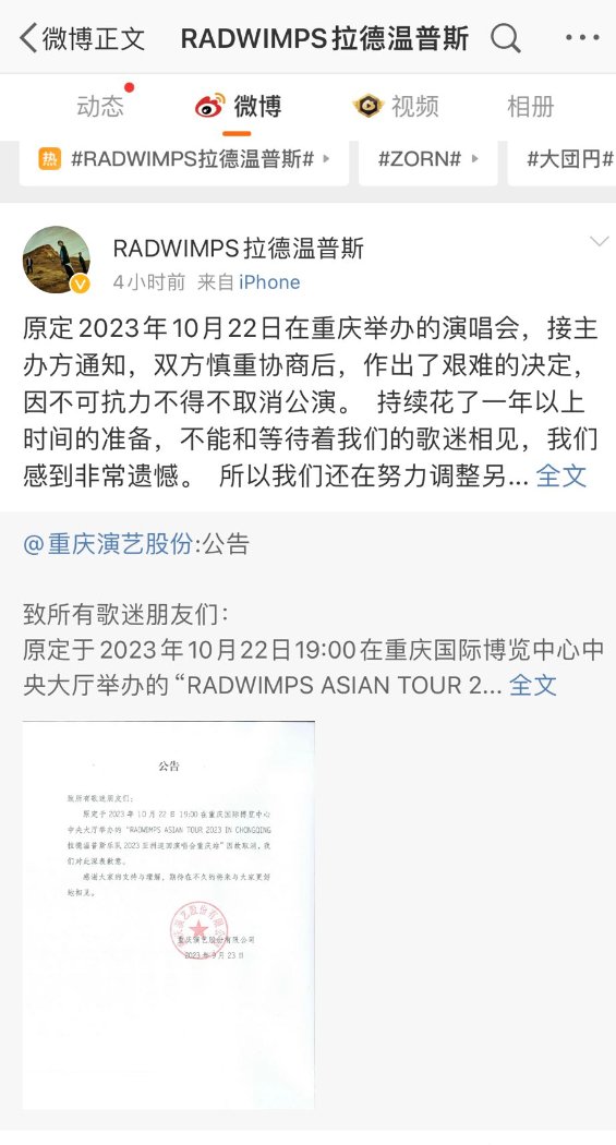作者 rronbang (Ron1)標題 [閒聊] RADWIMPS 中國重慶演唱會取消時間 Sun Sep 24 07:57:48 2023