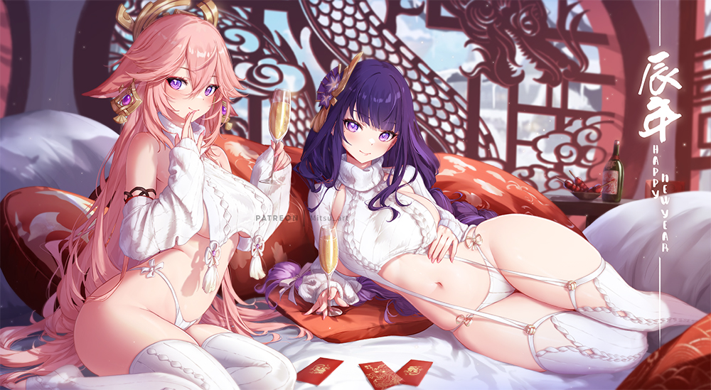 作者 Gwaewluin (神無月 孝臣)標題 [原神] 八重神子和雷電將軍穿新版童貞殺毛衣時間 Fri Jan 5 07:21:36 2024