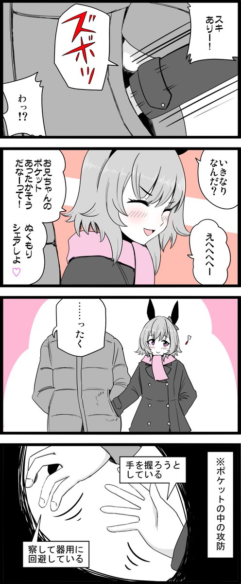 「大哥哥的口袋很溫暖感覺很暖和啊!把它分一點給我吧♡」