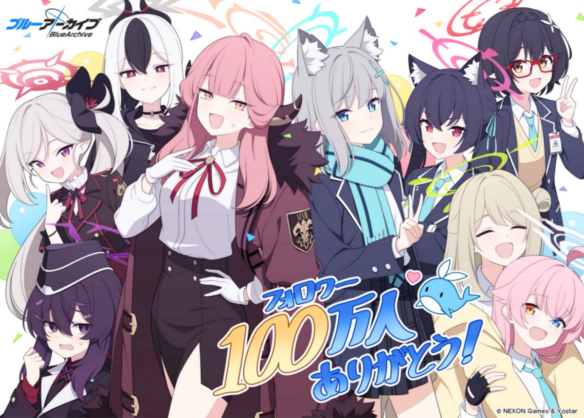『ブルーアーカイブ』公式Xアカウントのフォロワー数が、なんと100万人を突破しました