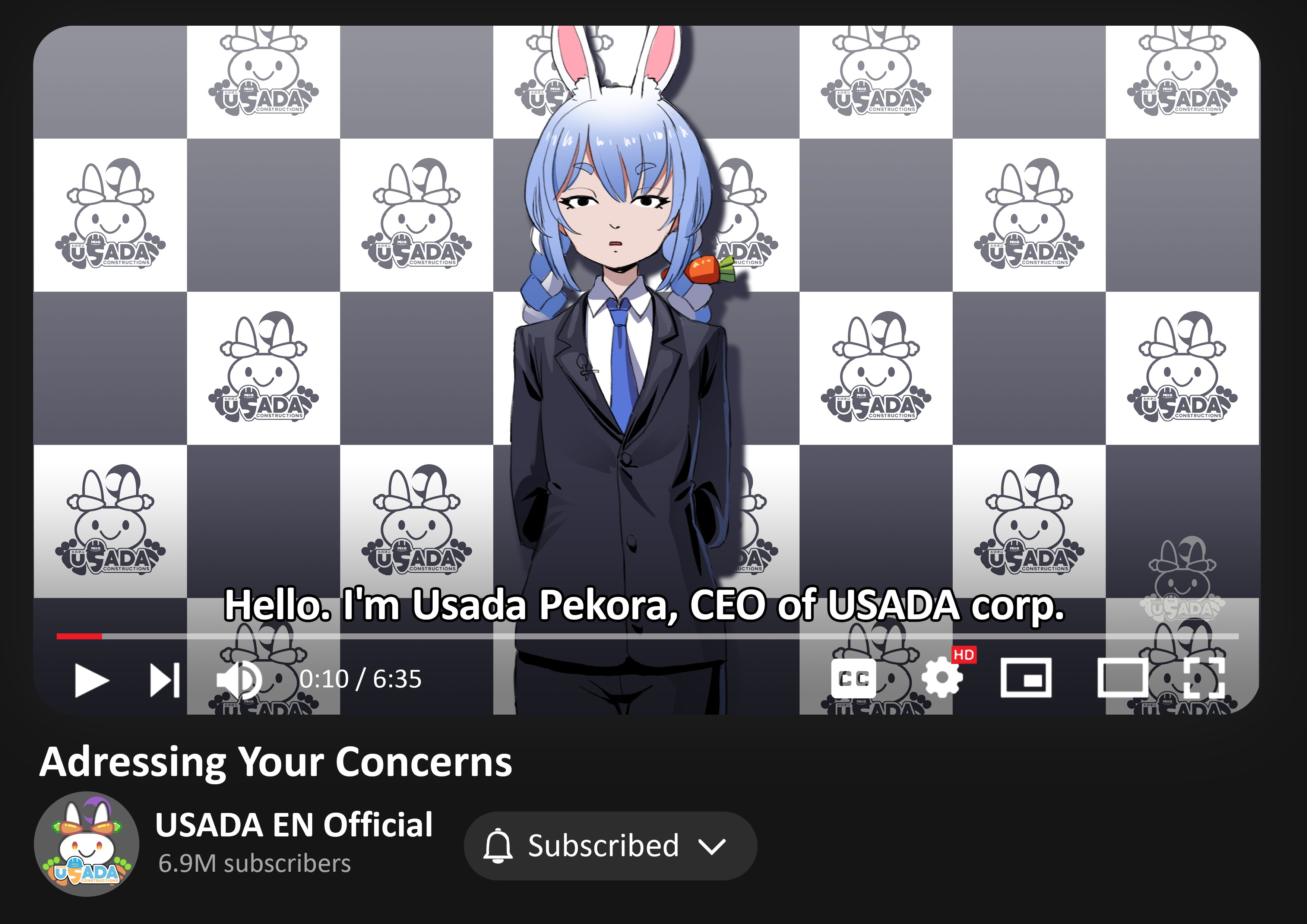 在這個影片,兔建CEO 兎田ぺこら 將對於最近的事件,