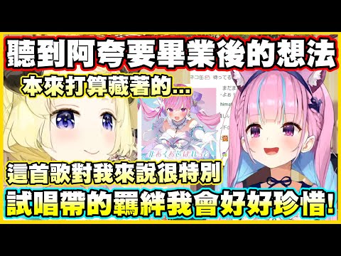 綿芽聽到阿夸要畢業後的想法...會繼續唱著阿庫炭的夸色盤的!!