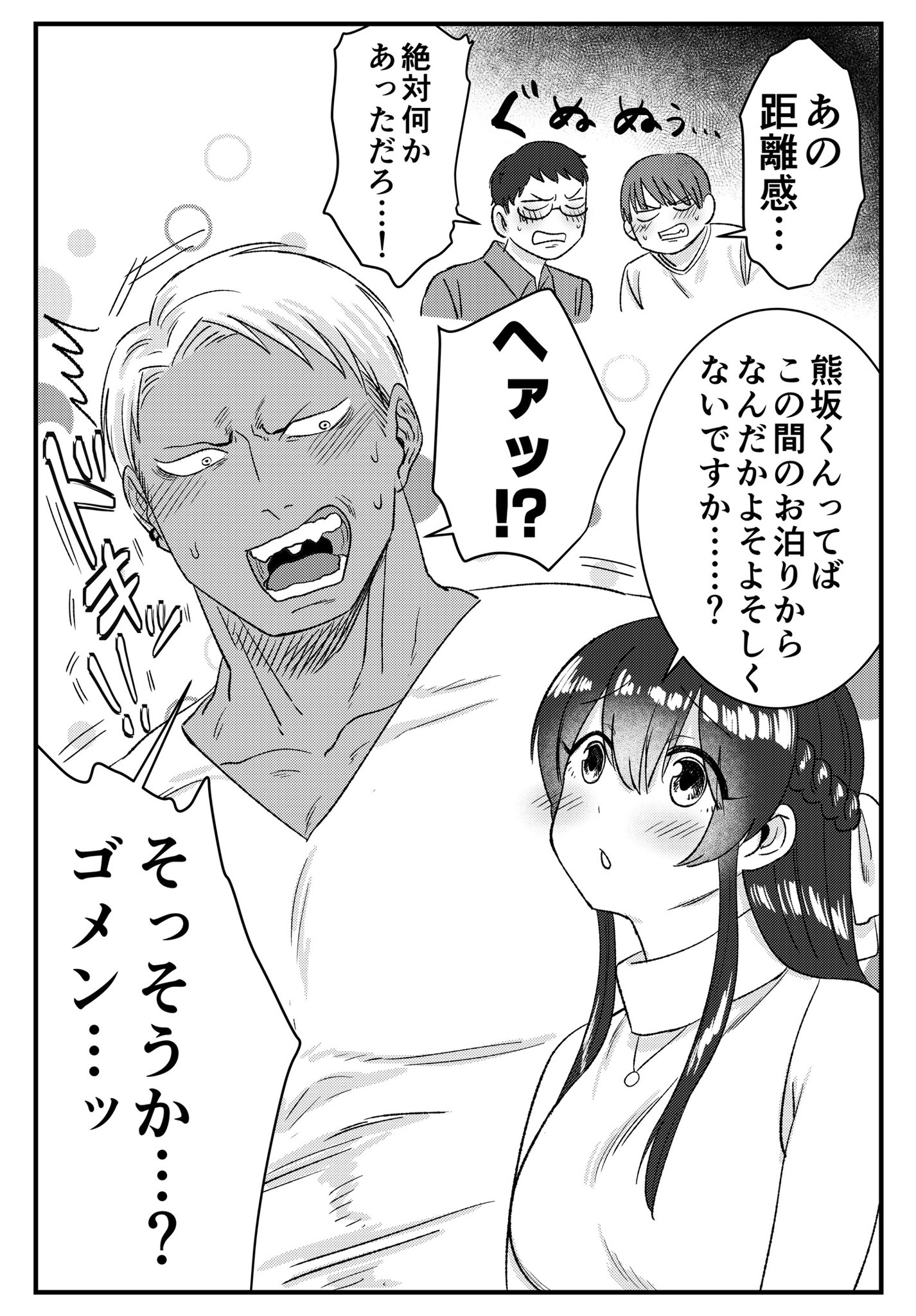 「我說熊坂同學啊,好像上次去你家過夜以後,你的態度就有點畏畏縮縮的?」