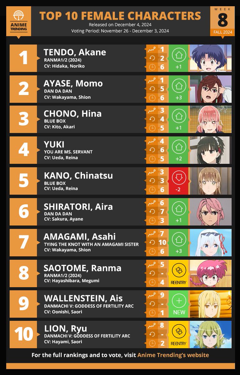 Anime Trending的每周女角排行榜