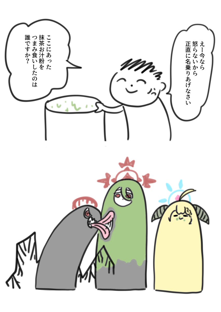 誰把放在這裡的抹茶紅豆湯吃掉了?老實說的話我不會生氣哦