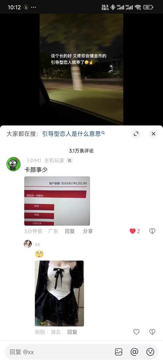 故事主角在抖音評論區中發了一張自己銀行帳戶的截圖