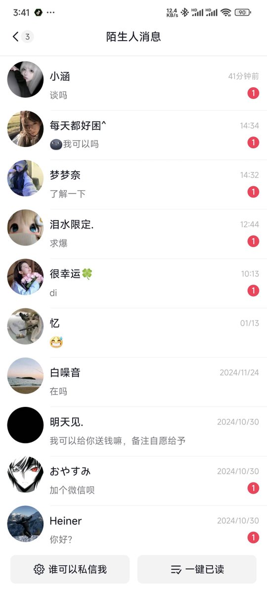 旋即收到一大堆陌生美女私訊