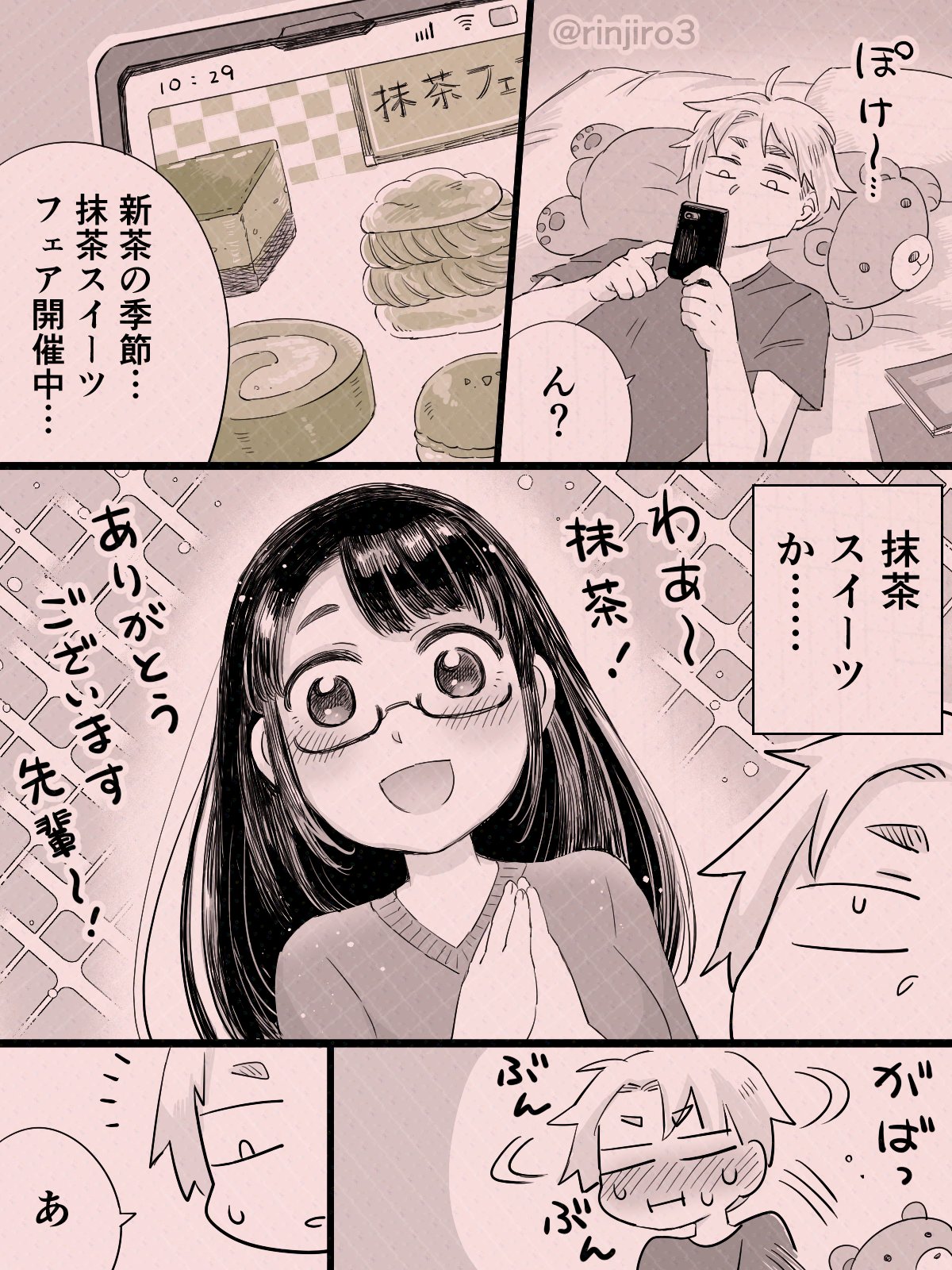『哇~抹茶!真的太感謝你了,前輩!』