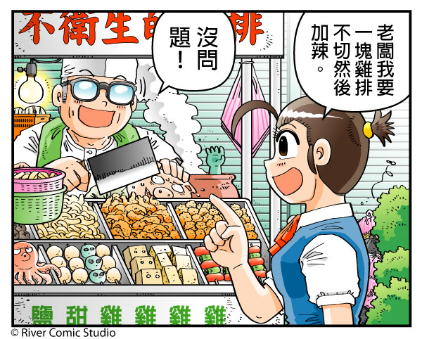 : 老闆快把雞排給我...不勞煩您了...
