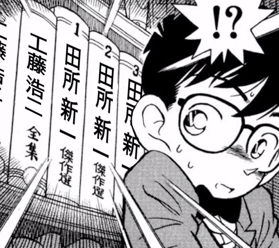 情急之下,他看到書架上的「江戶川亂步」和「柯南.道爾」兩位作者的名字