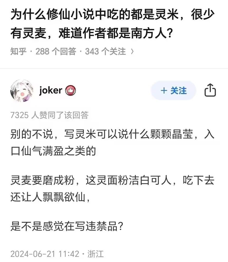 “為何修仙小說中,修煉者都吃靈米而不吃靈麥,所有作者都是南方人嗎”