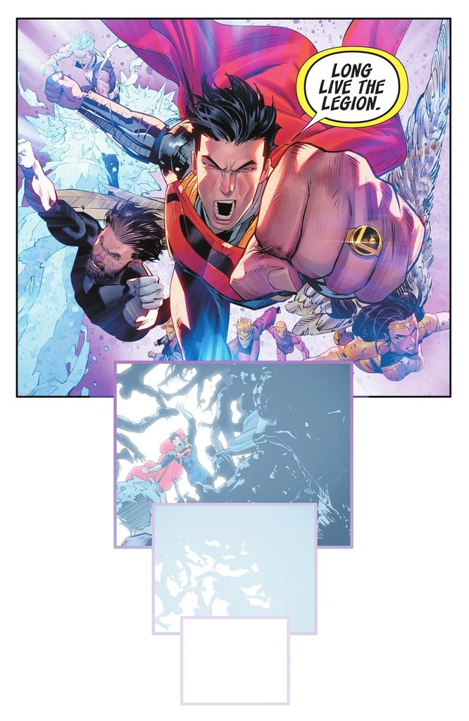 簡單來說就是至尊小超人用自己的破牆之力幫助超人從絕對宇宙的超級英雄軍團手中拯救金色先鋒
