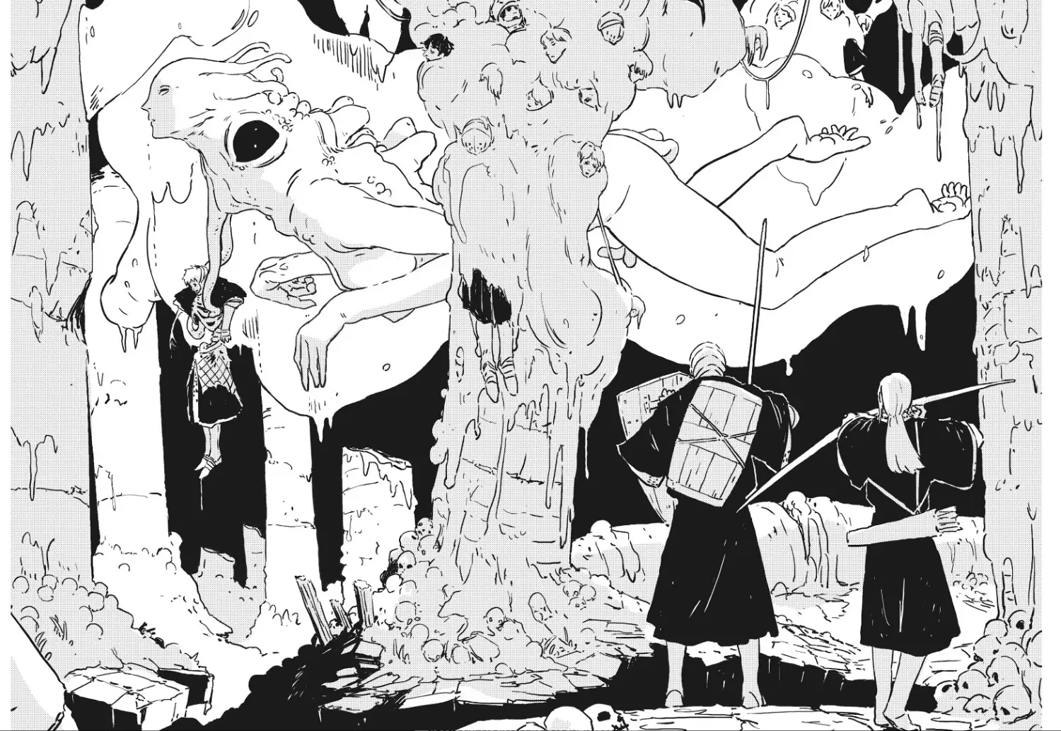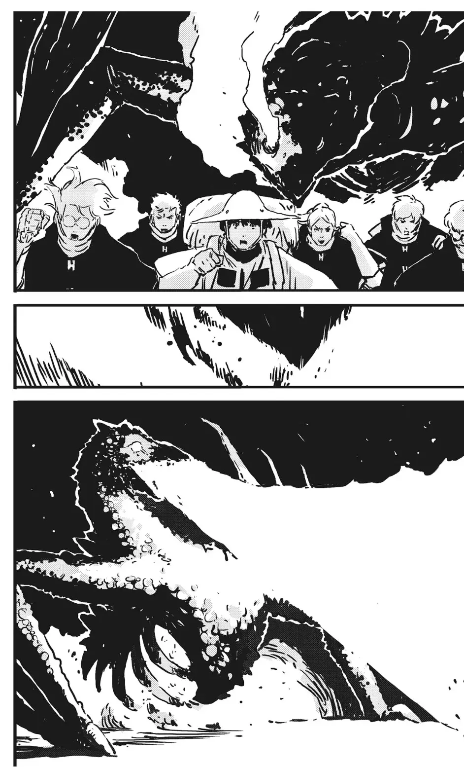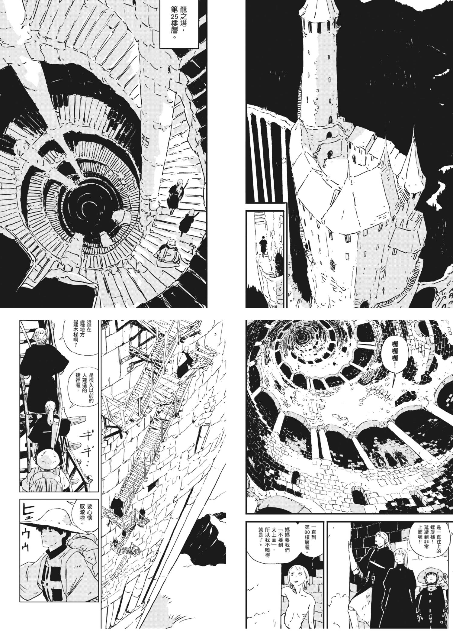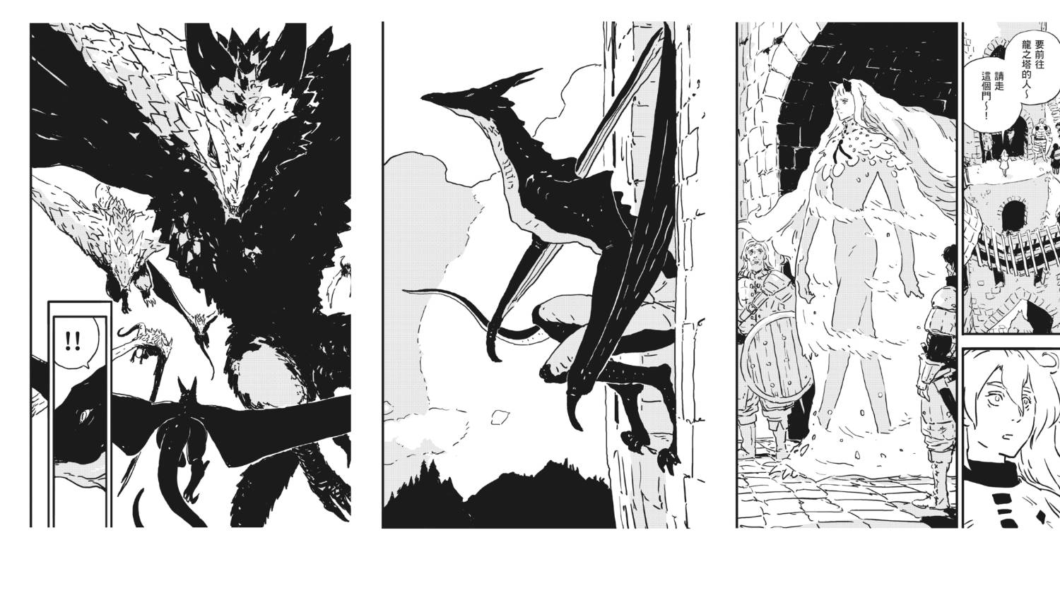 然後漫畫劇情就超級加速,就像RPG開場的序章一樣,一集內快轉到剩下主角三人爬塔救